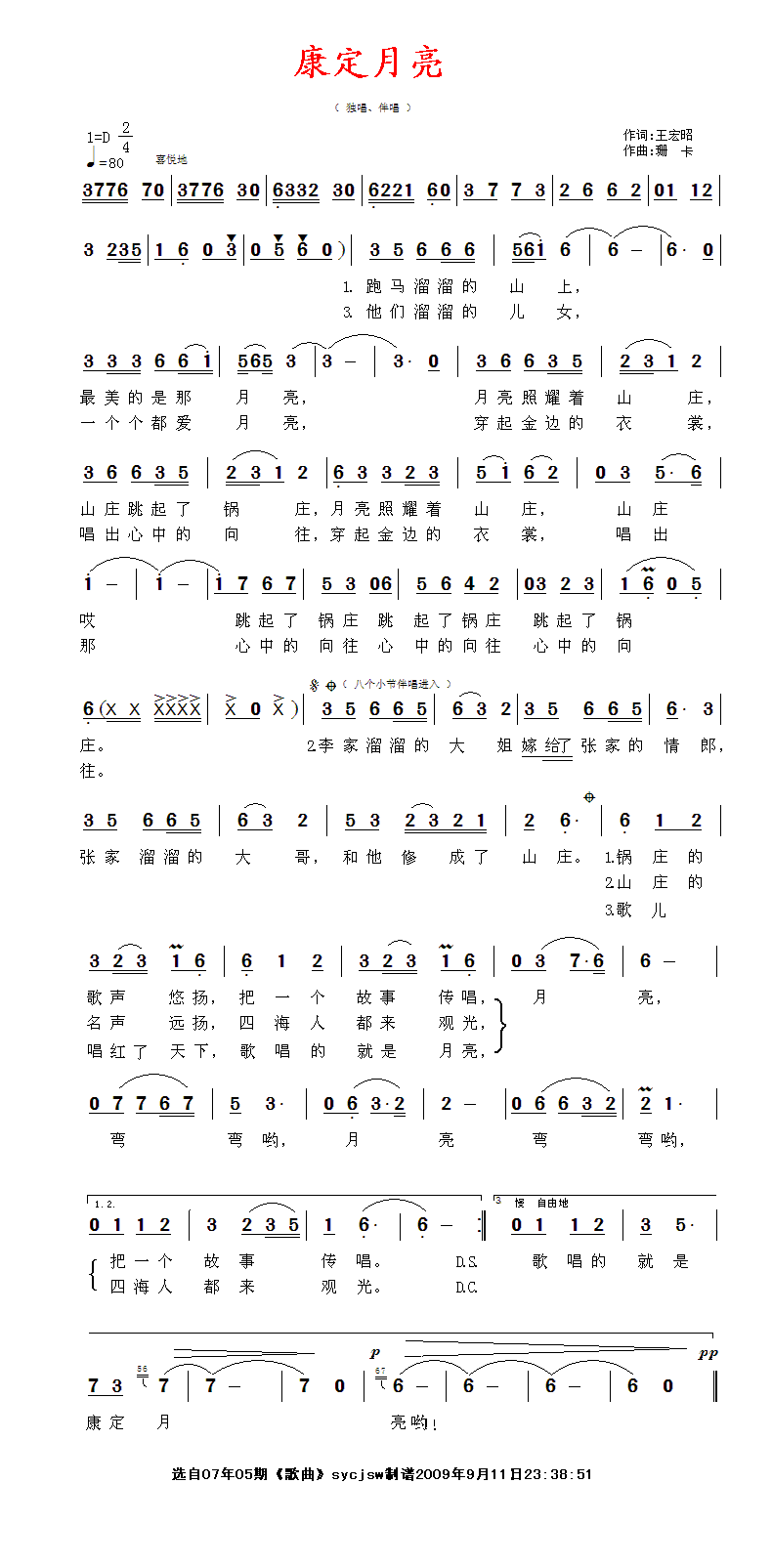 康定月亮简谱上传者为网友上传,原创作者为网络转载,歌曲原唱歌手为佚名,本简谱为图片格式,表现形式为,音乐性质为流行金曲。