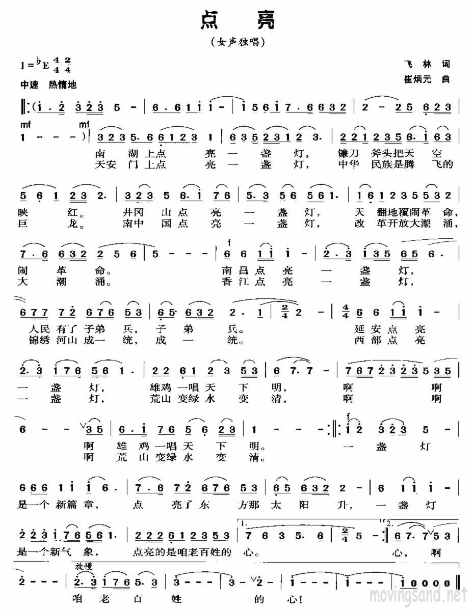 点 亮简谱上传者为网友上传,原创作者为网络转载,歌曲原唱歌手为佚名,本简谱为图片格式,表现形式为,音乐性质为流行金曲。