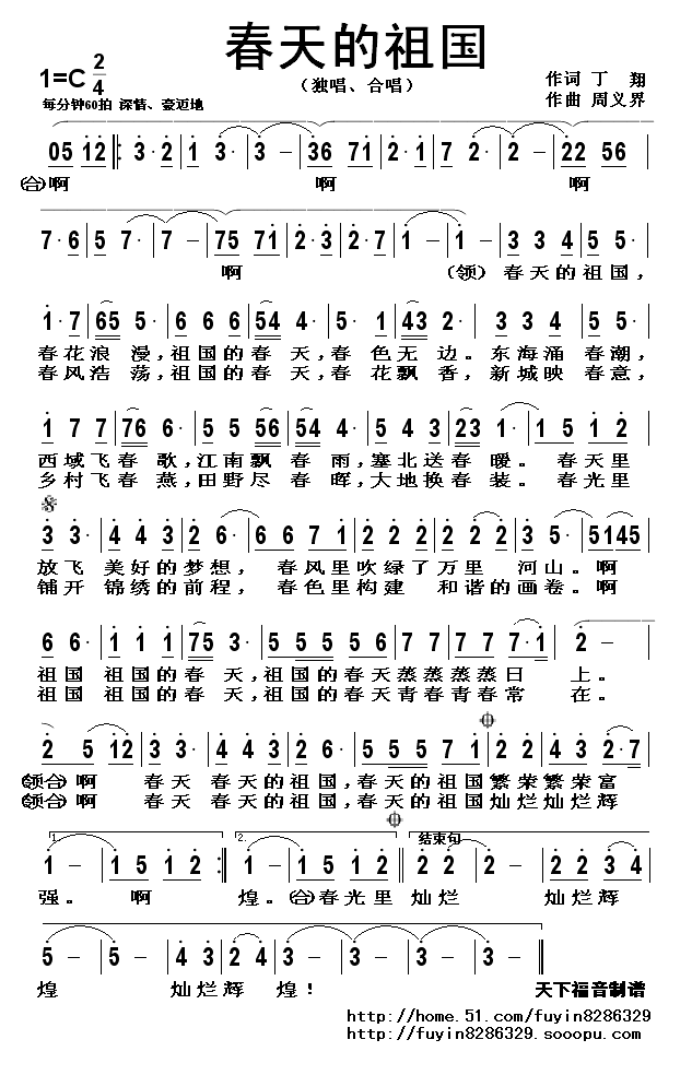 春天的祖国简谱上传者为网友上传,原创作者为网络转载,歌曲原唱歌手为佚名,本简谱为图片格式,表现形式为,音乐性质为流行金曲。