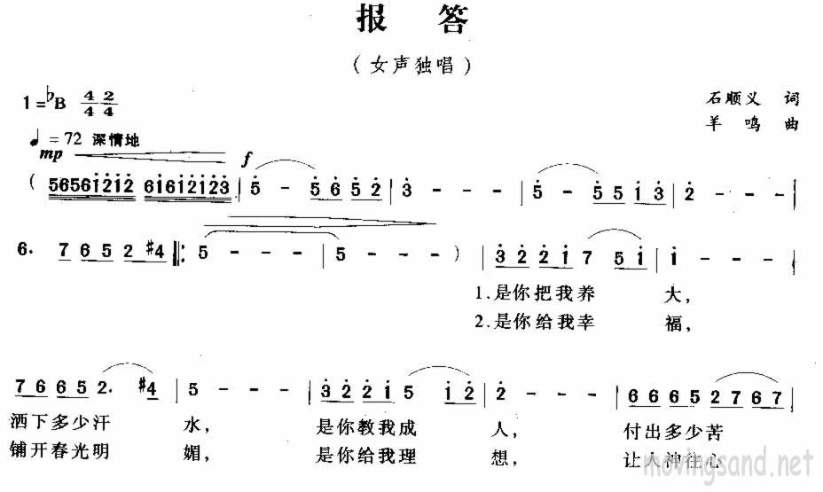 报答简谱上传者为网友上传,原创作者为网络转载,歌曲原唱歌手为佚名,本简谱为图片格式,表现形式为,音乐性质为流行金曲。