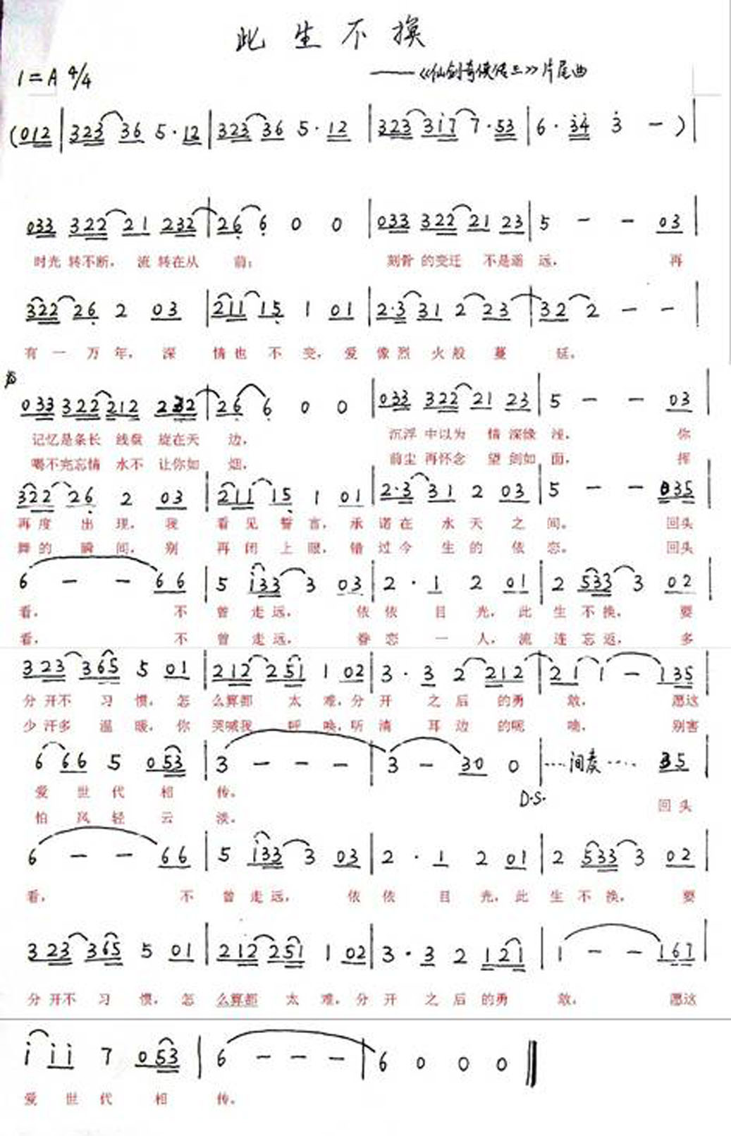 此生不换简谱上传者为网友上传,原创作者为网络转载,歌曲原唱歌手为佚名,本简谱为图片格式,表现形式为,音乐性质为流行金曲。