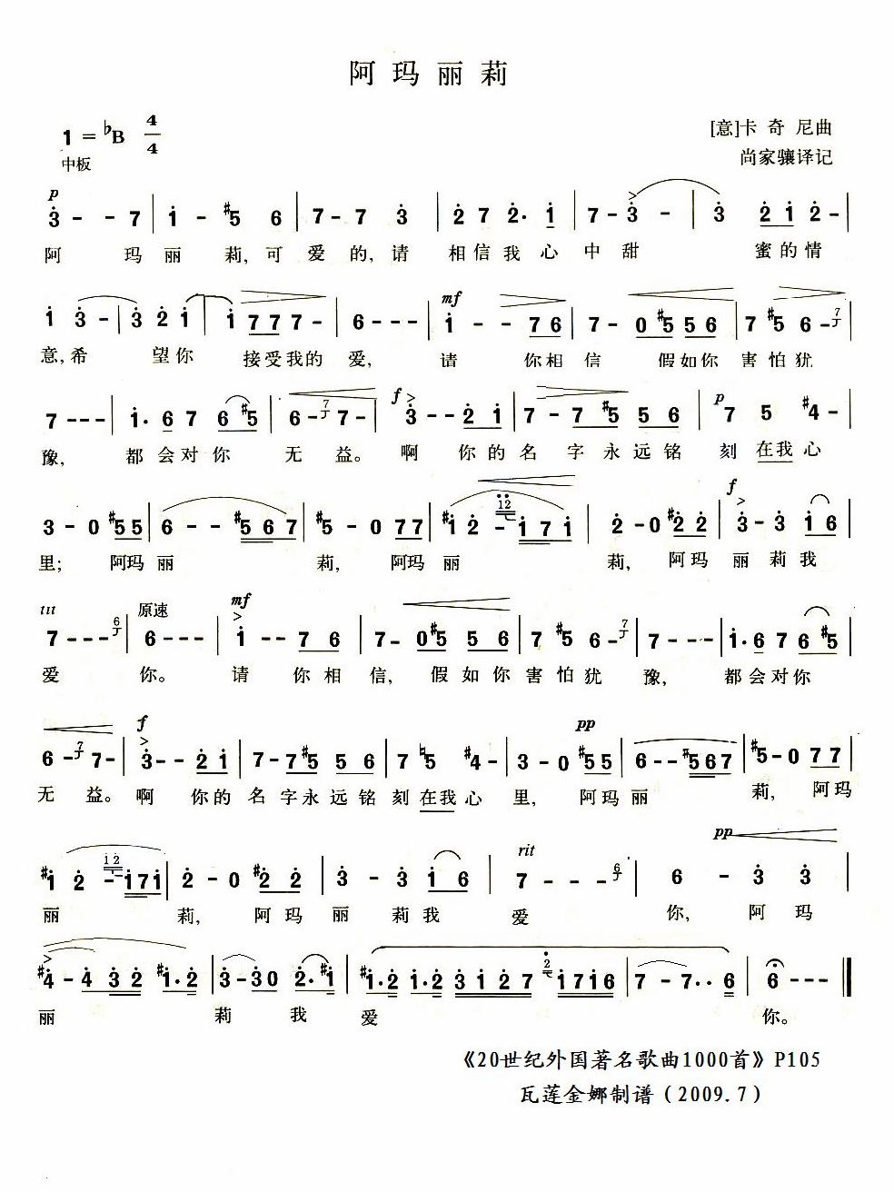 阿玛丽莉简谱上传者为网友上传,原创作者为网络转载,歌曲原唱歌手为佚名,本简谱为图片格式,表现形式为,音乐性质为流行金曲。