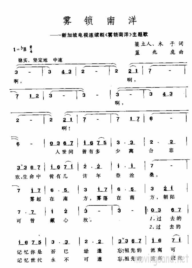 雾锁南洋简谱上传者为网友上传,原创作者为网络转载,歌曲原唱歌手为佚名,本简谱为图片格式,表现形式为,音乐性质为流行金曲。