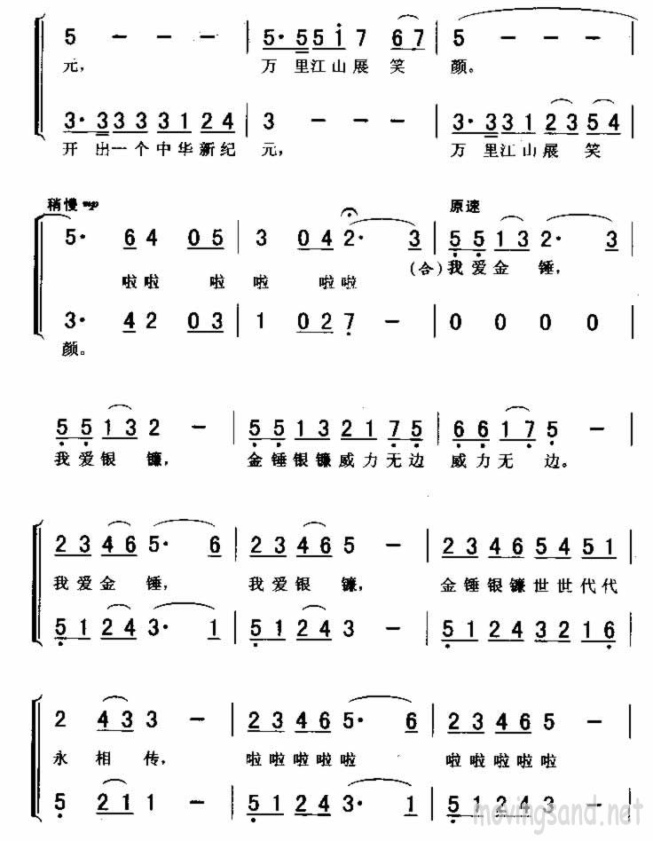 金锤银镰简谱上传者为网友上传,原创作者为网络转载,歌曲原唱歌手为佚名,本简谱为图片格式,表现形式为,音乐性质为流行金曲。