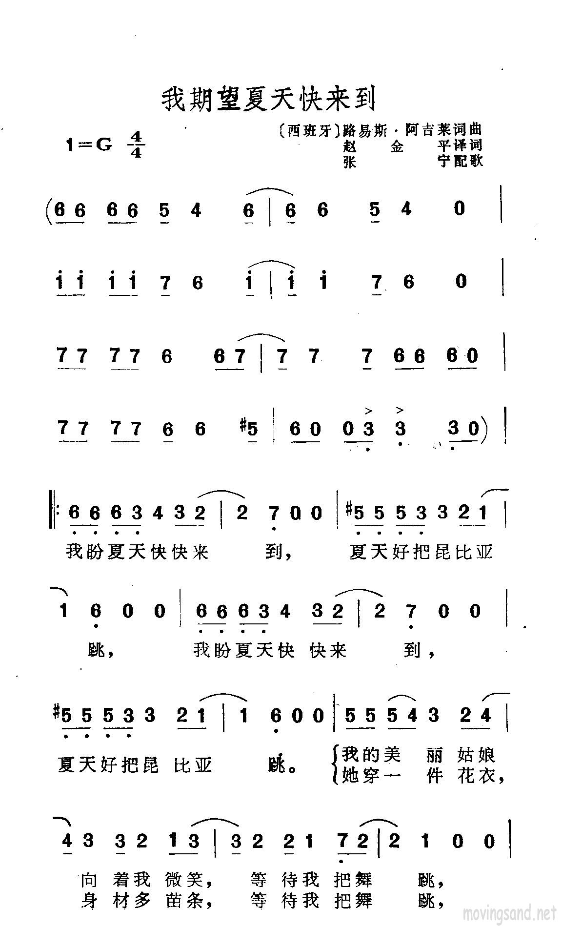 我期望夏天快来到简谱上传者为网友上传,原创作者为网络转载,歌曲原唱歌手为佚名,本简谱为图片格式,表现形式为,音乐性质为流行金曲。