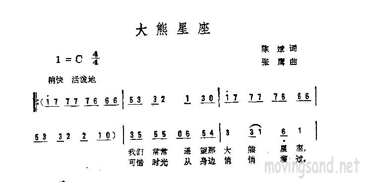 大熊星座简谱上传者为网友上传,原创作者为网络转载,歌曲原唱歌手为佚名,本简谱为图片格式,表现形式为,音乐性质为流行金曲。