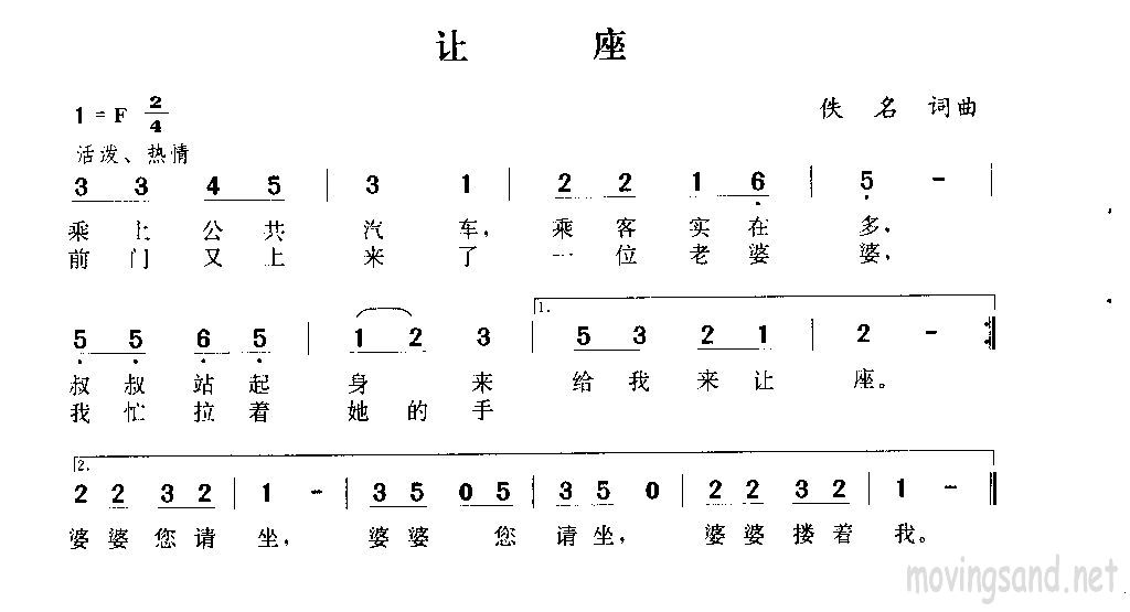让座简谱上传者为网友上传,原创作者为网络转载,歌曲原唱歌手为佚名,本简谱为图片格式,表现形式为,音乐性质为流行金曲。