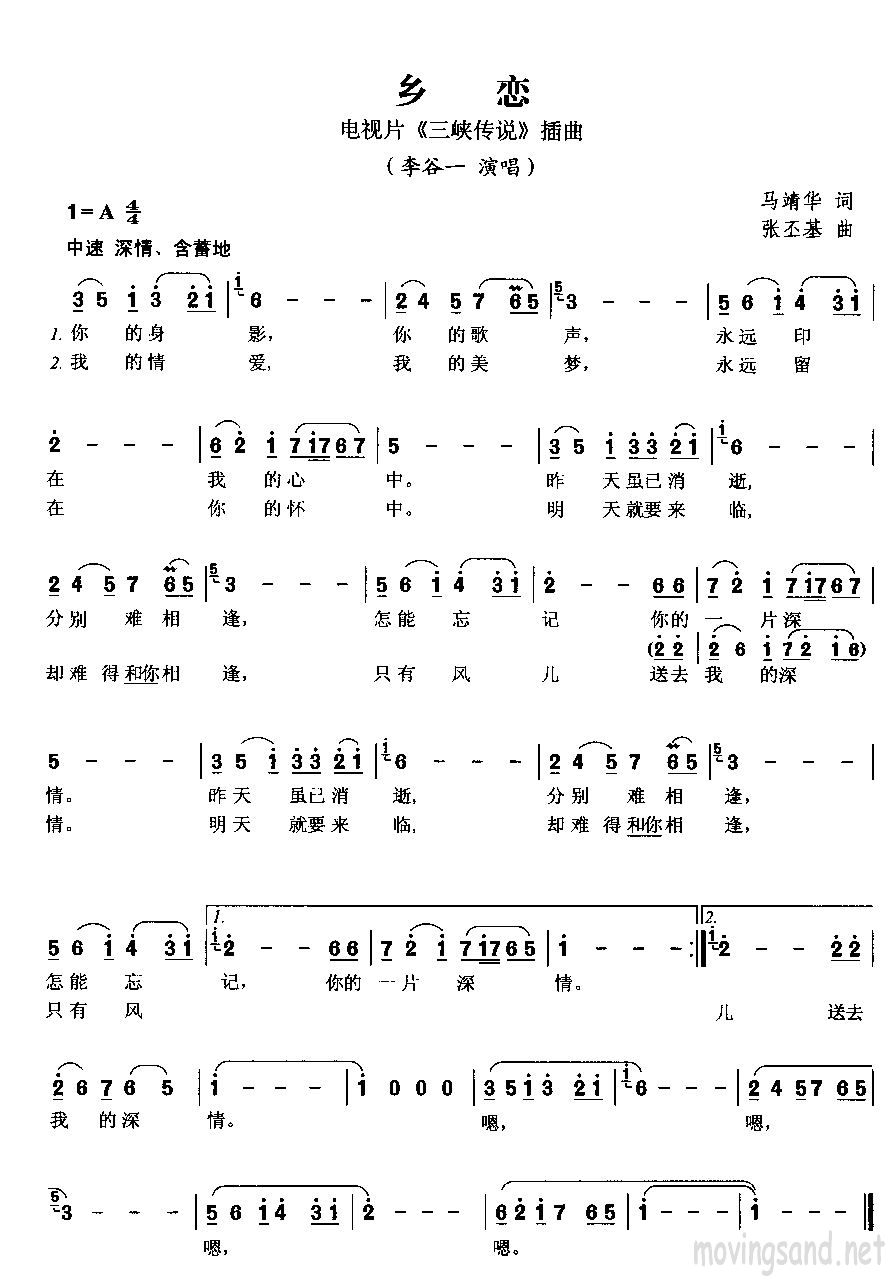 乡恋简谱上传者为网友上传,原创作者为网络转载,歌曲原唱歌手为佚名,本简谱为图片格式,表现形式为,音乐性质为流行金曲。
