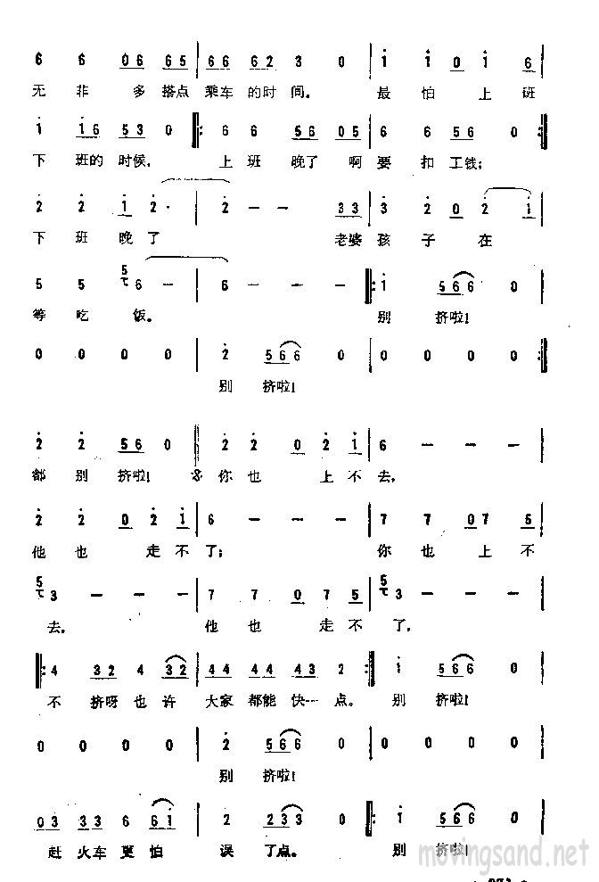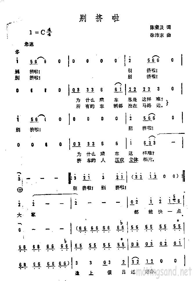 别挤啦简谱上传者为网友上传,原创作者为网络转载,歌曲原唱歌手为佚名,本简谱为图片格式,表现形式为,音乐性质为流行金曲。
