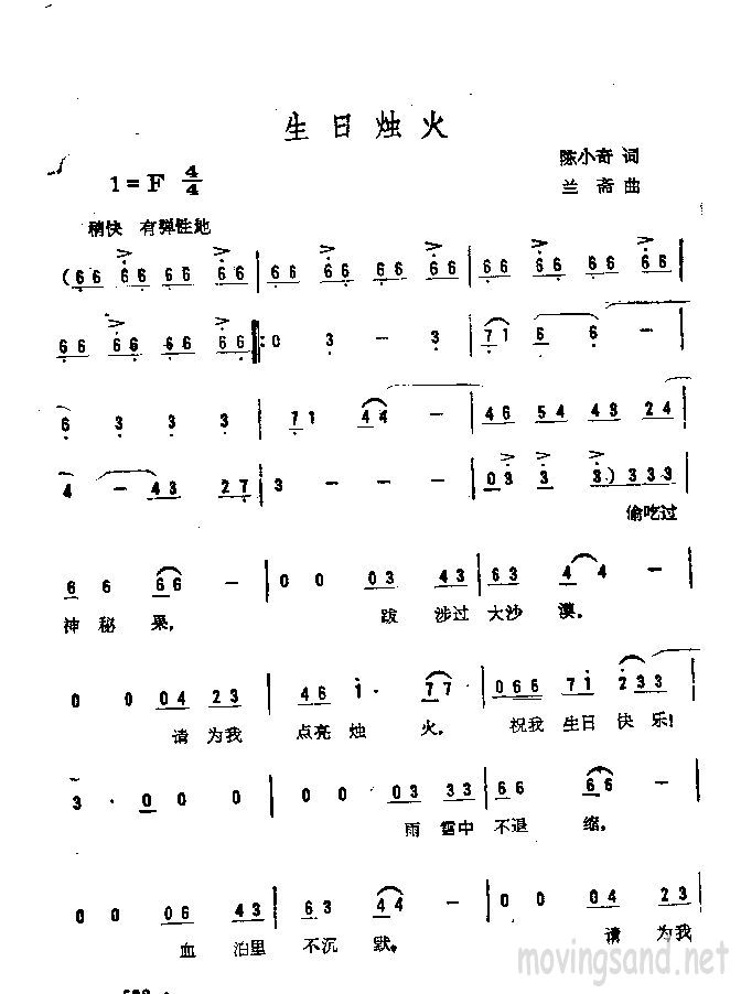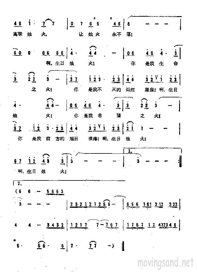 生日烛火简谱上传者为网友上传,原创作者为网络转载,歌曲原唱歌手为佚名,本简谱为图片格式,表现形式为,音乐性质为流行金曲。
