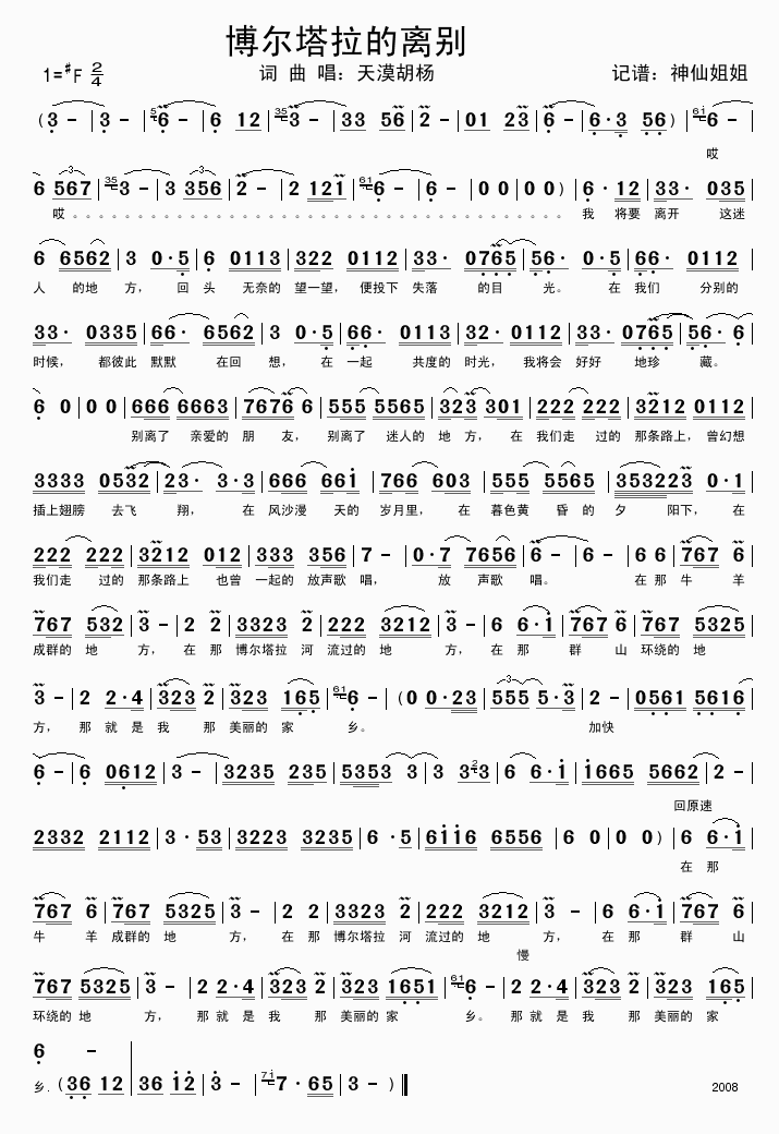 博尔塔拉的离别简谱上传者为网友上传,原创作者为网络转载,歌曲原唱歌手为佚名,本简谱为图片格式,表现形式为,音乐性质为流行金曲。