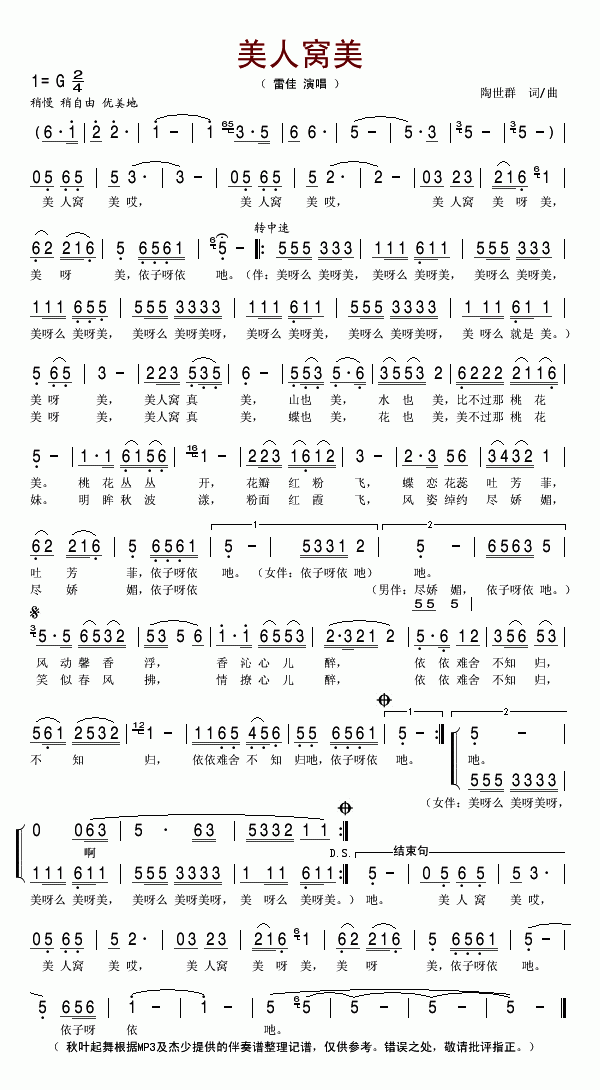美人窝美简谱上传者为网友上传,原创作者为网络转载,歌曲原唱歌手为佚名,本简谱为图片格式,表现形式为,音乐性质为流行金曲。