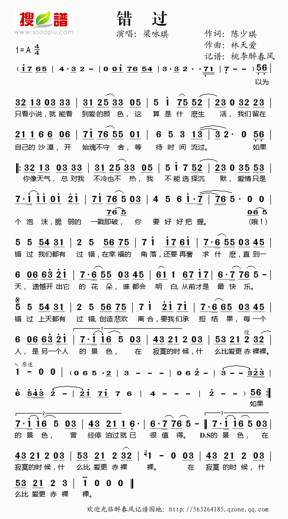 错过简谱上传者为网友上传,原创作者为网络转载,歌曲原唱歌手为佚名,本简谱为图片格式,表现形式为,音乐性质为流行金曲。