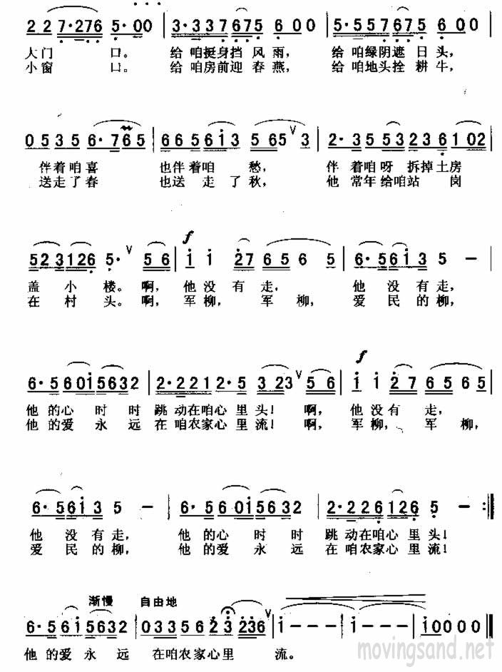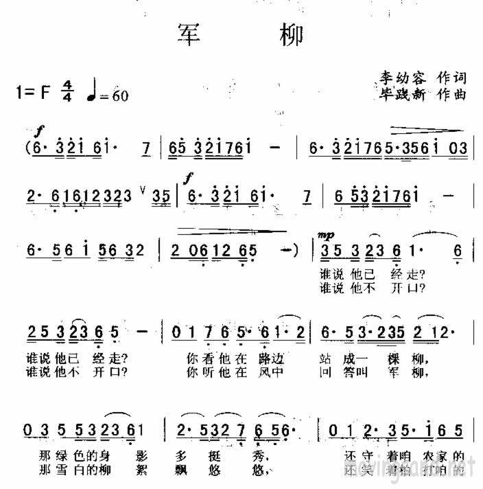 军柳简谱上传者为网友上传,原创作者为网络转载,歌曲原唱歌手为佚名,本简谱为图片格式,表现形式为,音乐性质为流行金曲。
