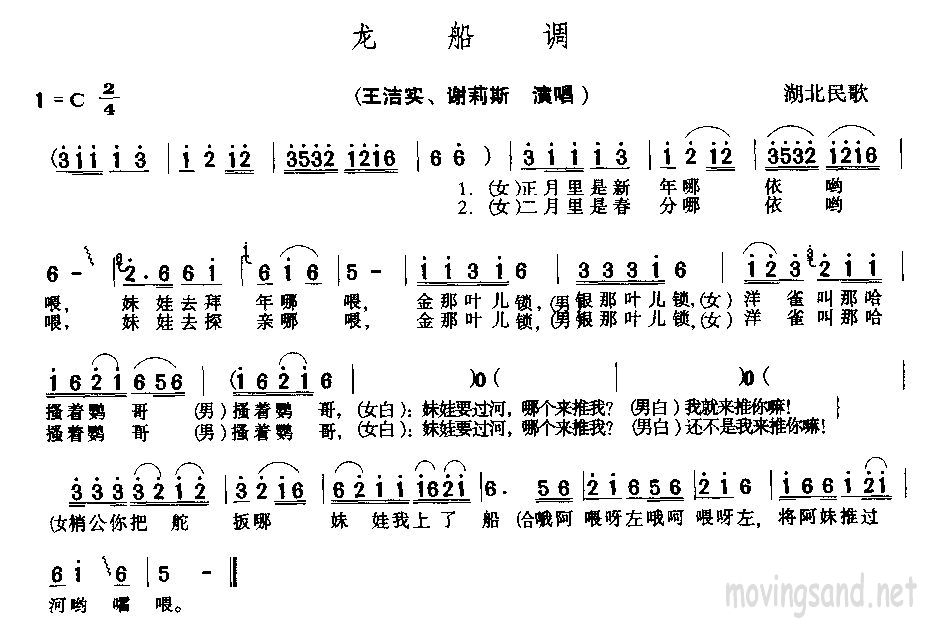 龙船调简谱上传者为网友上传,原创作者为网络转载,歌曲原唱歌手为佚名,本简谱为图片格式,表现形式为,音乐性质为流行金曲。