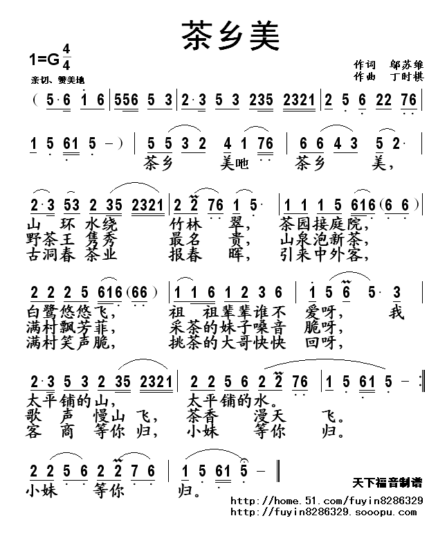 茶乡美简谱上传者为网友上传,原创作者为网络转载,歌曲原唱歌手为佚名,本简谱为图片格式,表现形式为,音乐性质为流行金曲。