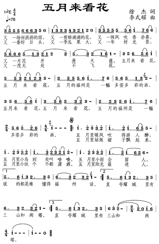 五月来看花简谱上传者为网友上传,原创作者为网络转载,歌曲原唱歌手为佚名,本简谱为图片格式,表现形式为,音乐性质为流行金曲。
