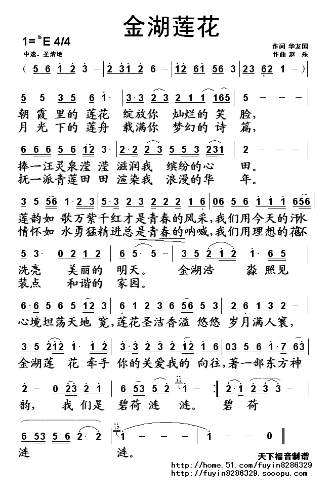 金湖莲花简谱上传者为网友上传,原创作者为网络转载,歌曲原唱歌手为佚名,本简谱为图片格式,表现形式为,音乐性质为流行金曲。
