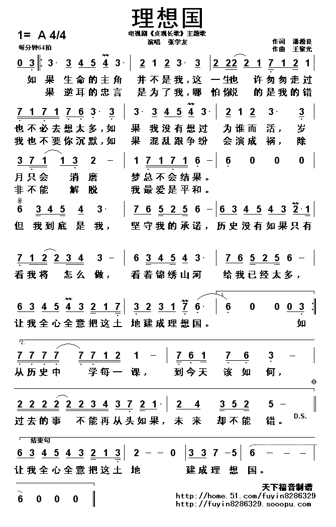 理想国简谱上传者为网友上传,原创作者为网络转载,歌曲原唱歌手为佚名,本简谱为图片格式,表现形式为,音乐性质为流行金曲。