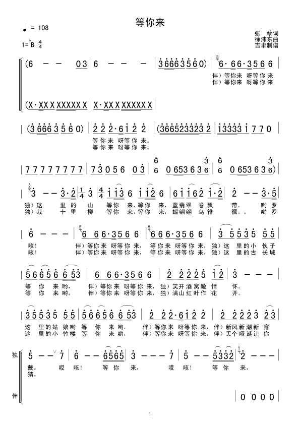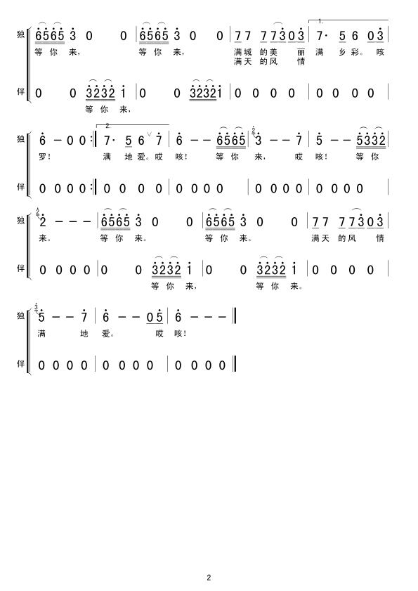 等你来简谱上传者为网友上传,原创作者为网络转载,歌曲原唱歌手为佚名,本简谱为图片格式,表现形式为,音乐性质为流行金曲。