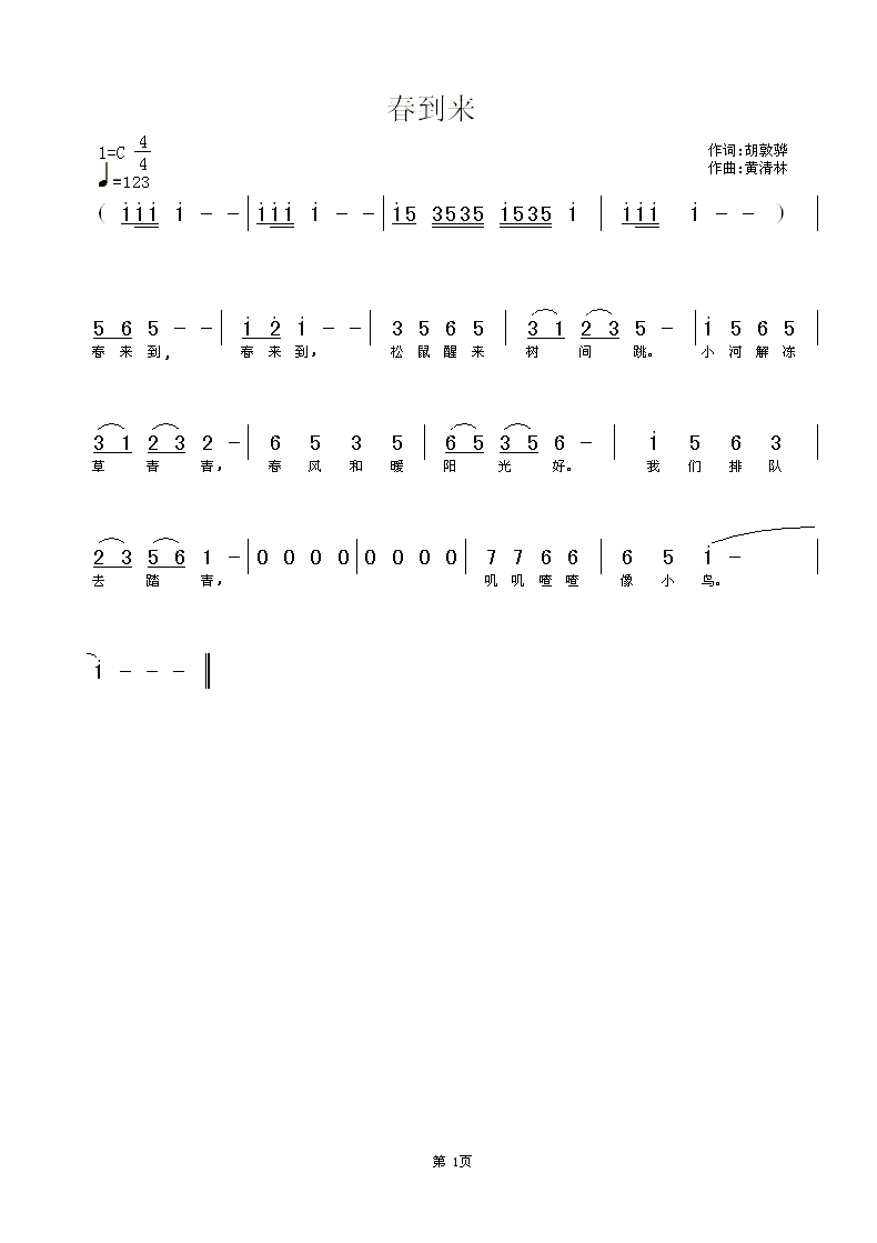 春来到简谱上传者为网友上传,原创作者为网络转载,歌曲原唱歌手为佚名,本简谱为图片格式,表现形式为,音乐性质为流行金曲。