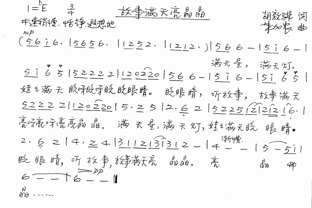故事满天亮晶晶简谱上传者为网友上传,原创作者为网络转载,歌曲原唱歌手为佚名,本简谱为图片格式,表现形式为,音乐性质为流行金曲。