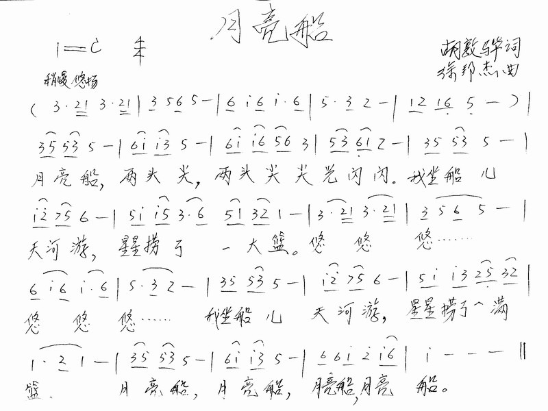 月亮船简谱上传者为网友上传,原创作者为网络转载,歌曲原唱歌手为佚名,本简谱为图片格式,表现形式为,音乐性质为流行金曲。