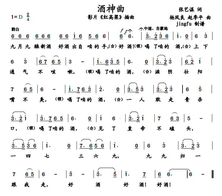 酒神曲简谱上传者为网友上传,原创作者为网络转载,歌曲原唱歌手为佚名,本简谱为图片格式,表现形式为,音乐性质为流行金曲。