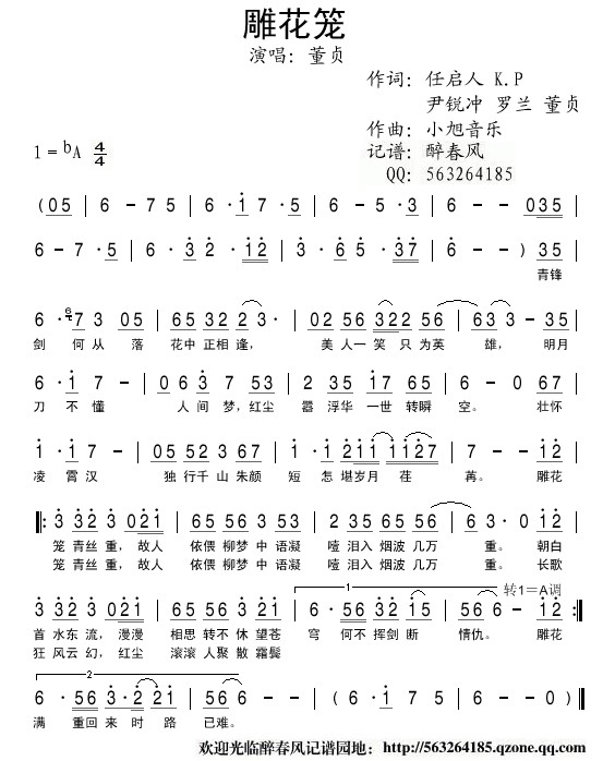 雕花笼简谱上传者为网友上传,原创作者为网络转载,歌曲原唱歌手为佚名,本简谱为图片格式,表现形式为,音乐性质为流行金曲。