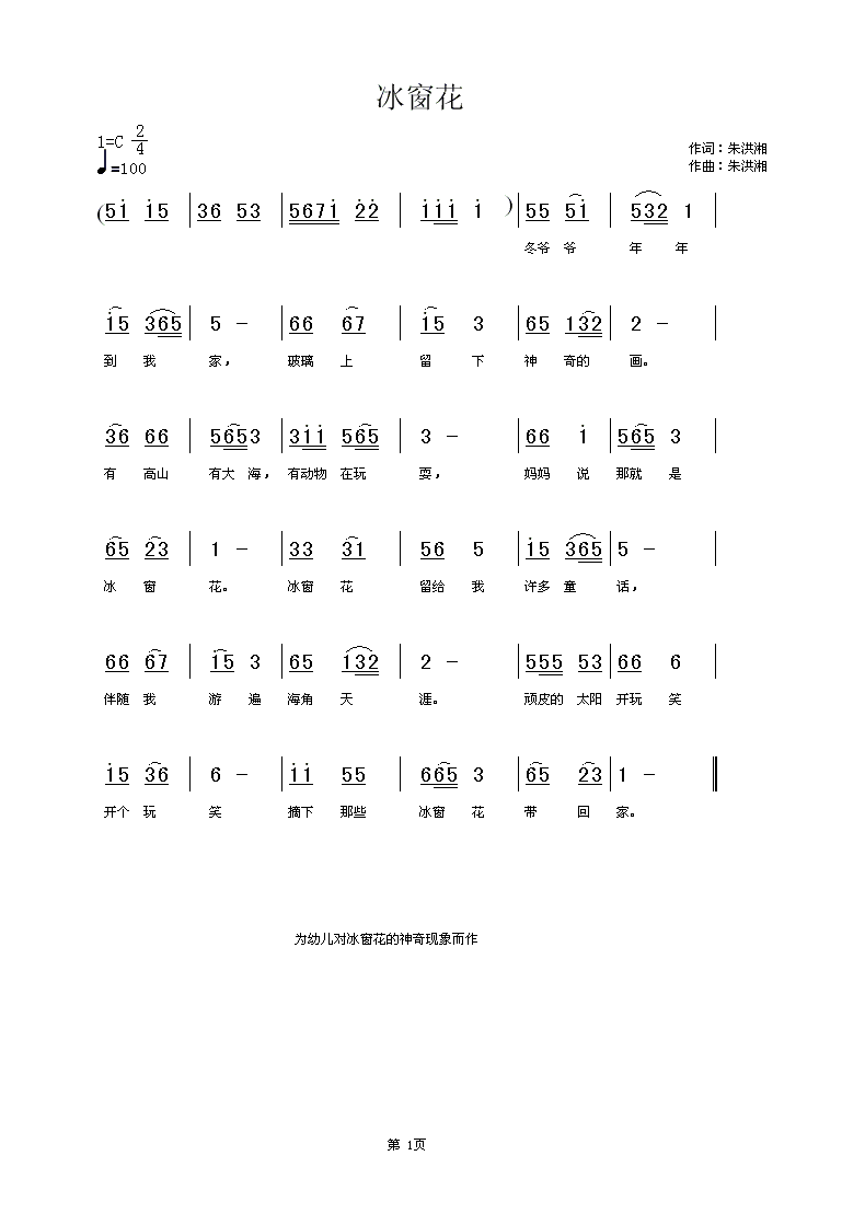 冰窗花简谱上传者为网友上传,原创作者为网络转载,歌曲原唱歌手为佚名,本简谱为图片格式,表现形式为,音乐性质为流行金曲。