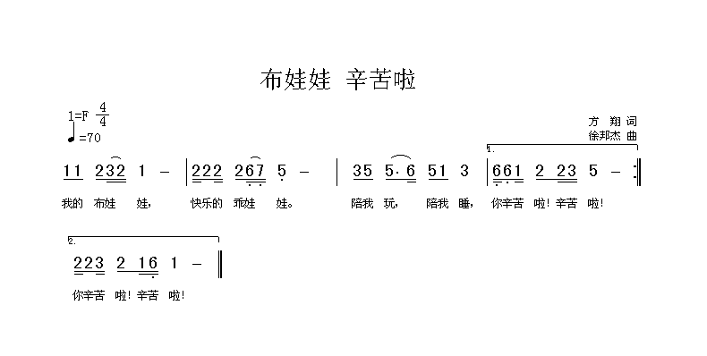 布娃娃 辛苦啦简谱上传者为网友上传,原创作者为网络转载,歌曲原唱歌手为佚名,本简谱为图片格式,表现形式为,音乐性质为流行金曲。