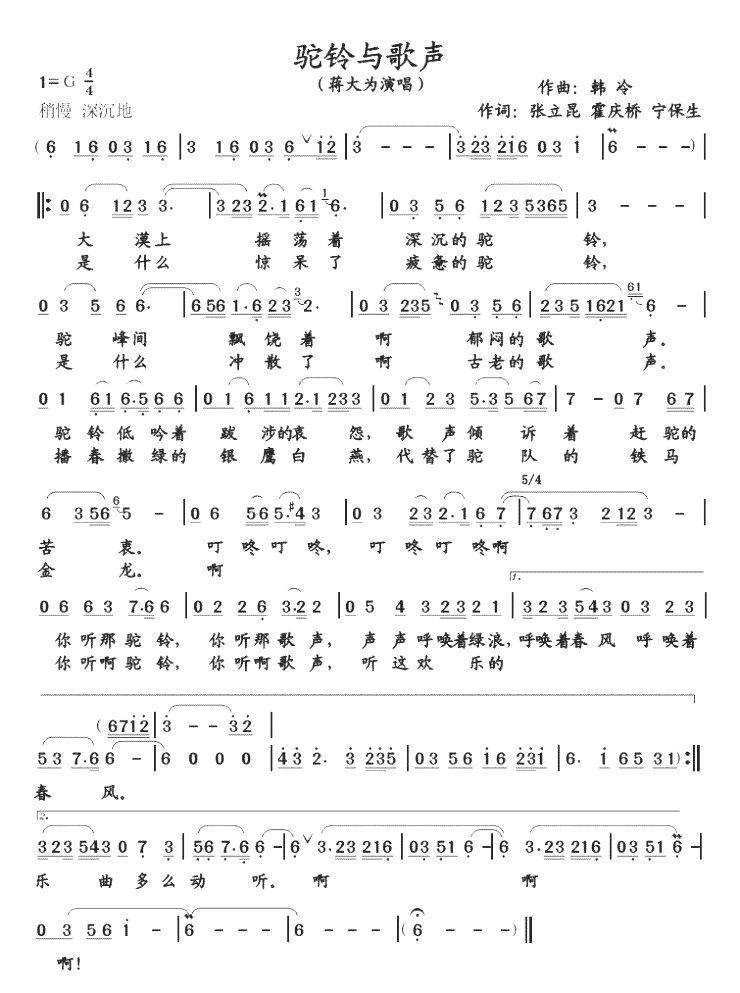 驼铃与歌声简谱上传者为网友上传,原创作者为网络转载,歌曲原唱歌手为佚名,本简谱为图片格式,表现形式为,音乐性质为流行金曲。