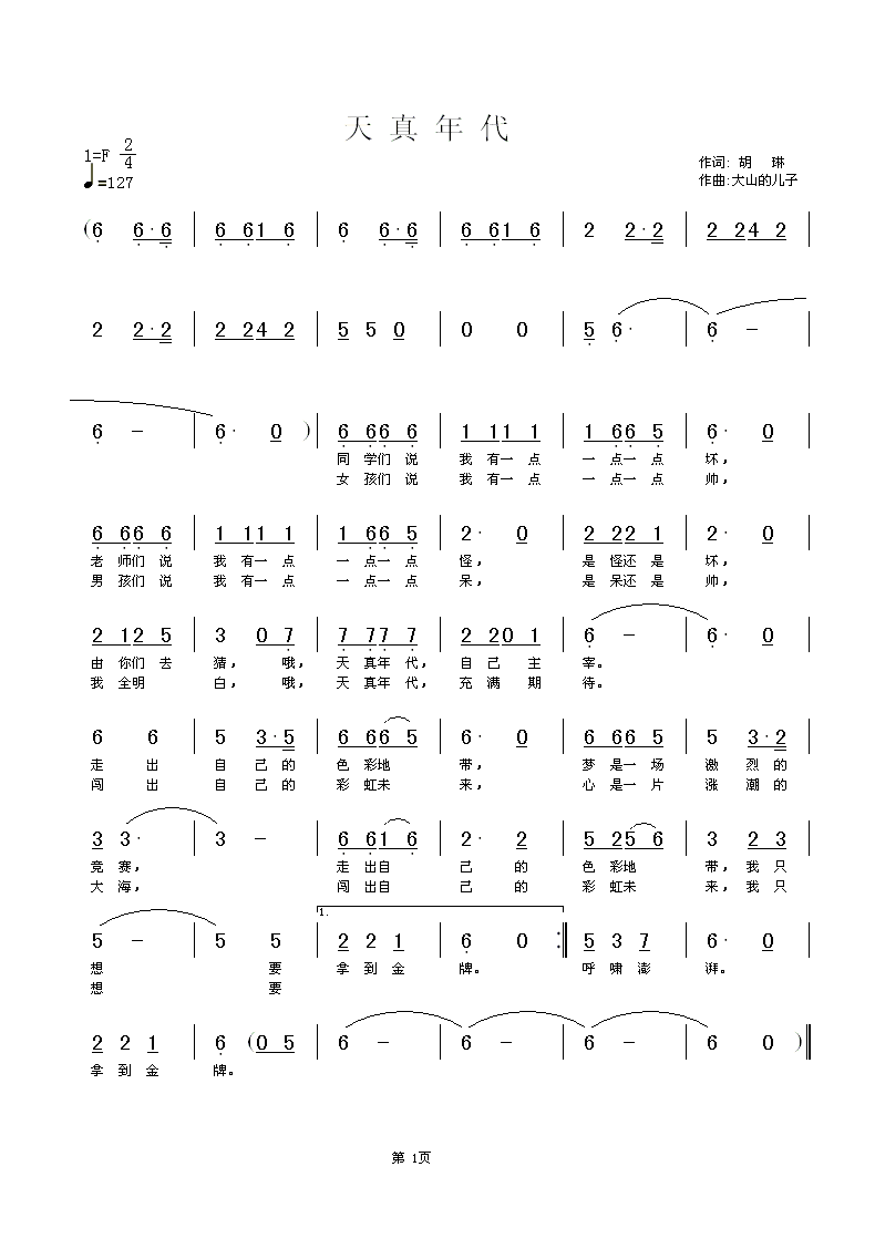 天真年代简谱