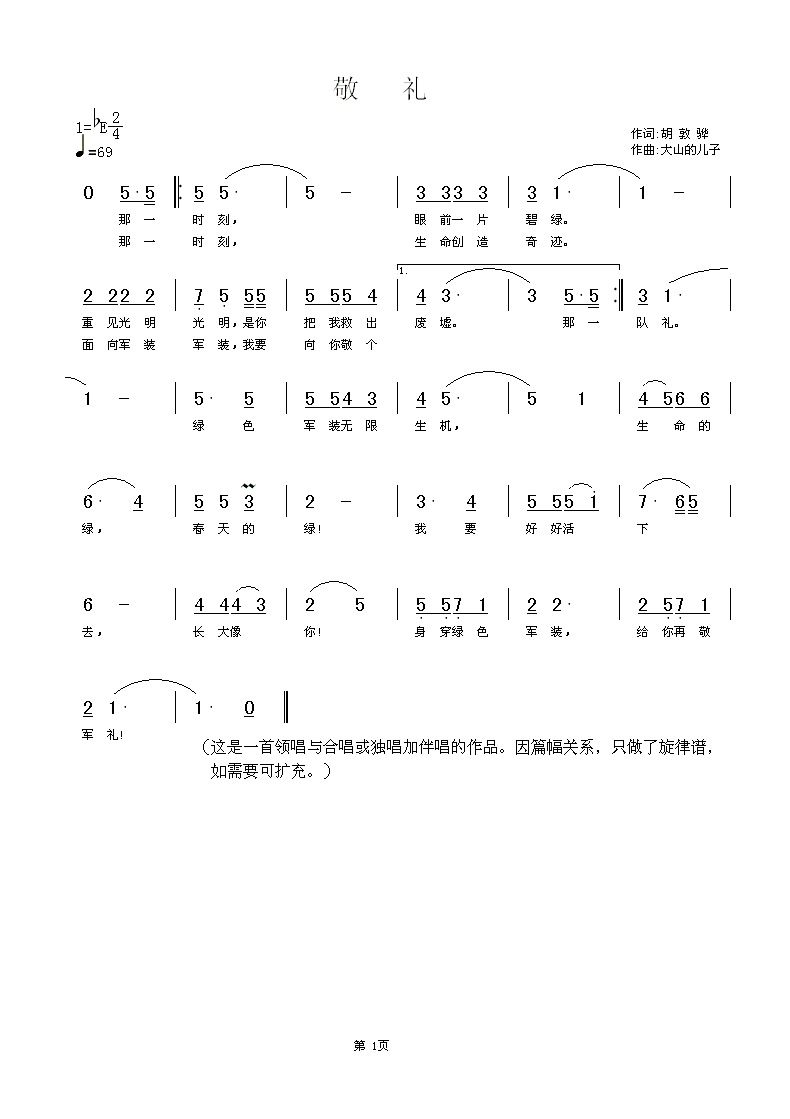 敬 礼简谱上传者为网友上传,原创作者为网络转载,歌曲原唱歌手为佚名,本简谱为图片格式,表现形式为,音乐性质为流行金曲。