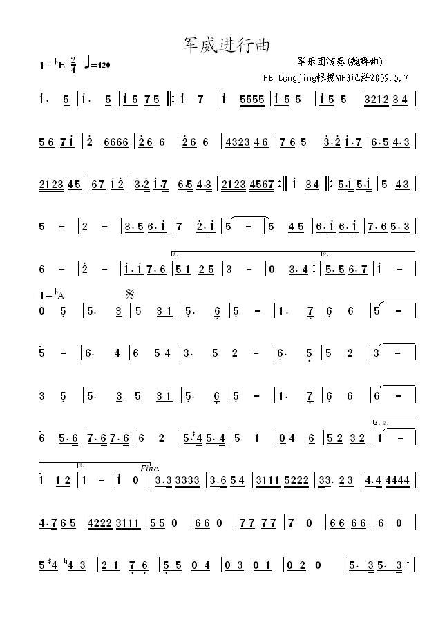 军威进行曲简谱上传者为网友上传,原创作者为网络转载,歌曲原唱歌手为佚名,本简谱为图片格式,表现形式为,音乐性质为流行金曲。