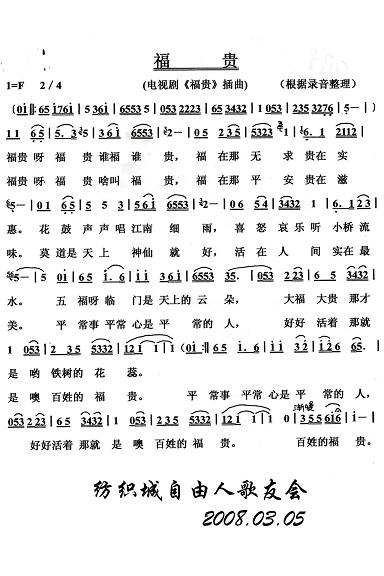 福贵简谱上传者为网友上传,原创作者为网络转载,歌曲原唱歌手为佚名,本简谱为图片格式,表现形式为,音乐性质为流行金曲。