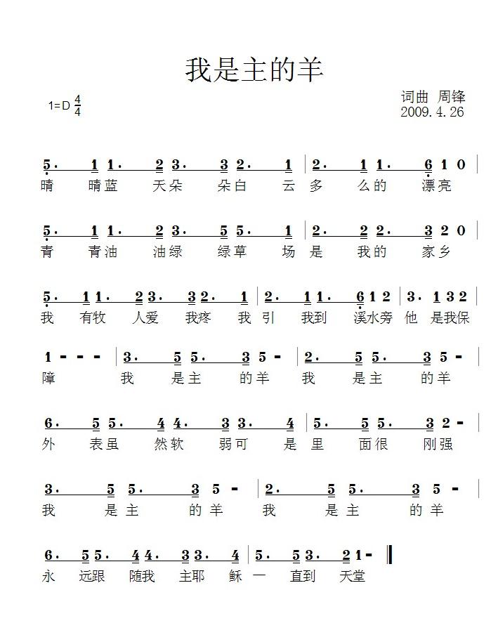 我是主的羊简谱上传者为网友上传,原创作者为网络转载,歌曲原唱歌手为佚名,本简谱为图片格式,表现形式为,音乐性质为流行金曲。