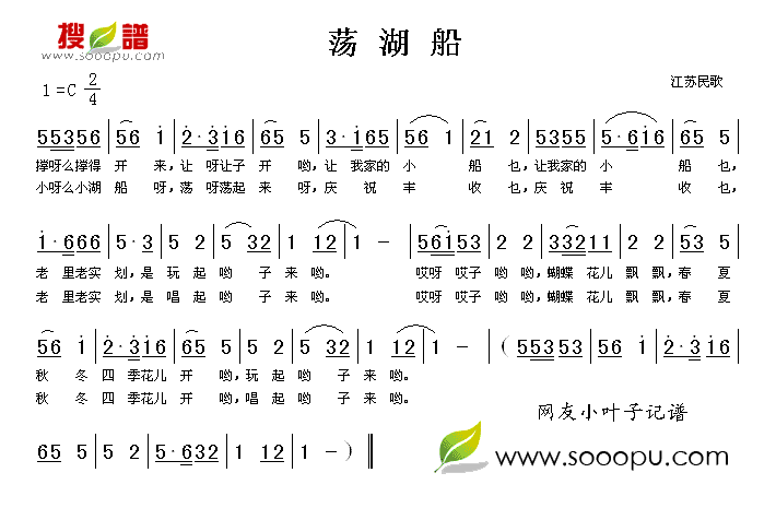 荡湖船简谱上传者为网友上传,原创作者为网络转载,歌曲原唱歌手为佚名,本简谱为图片格式,表现形式为,音乐性质为流行金曲。