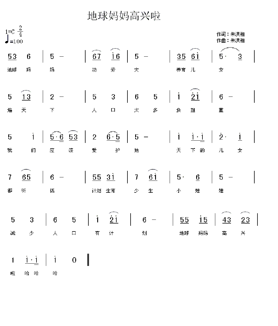 地球妈妈高兴啦简谱上传者为网友上传,原创作者为网络转载,歌曲原唱歌手为佚名,本简谱为图片格式,表现形式为,音乐性质为流行金曲。