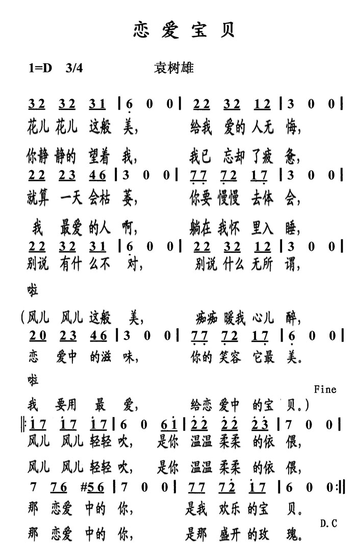 恋爱宝贝简谱上传者为网友上传,原创作者为网络转载,歌曲原唱歌手为佚名,本简谱为图片格式,表现形式为,音乐性质为流行金曲。