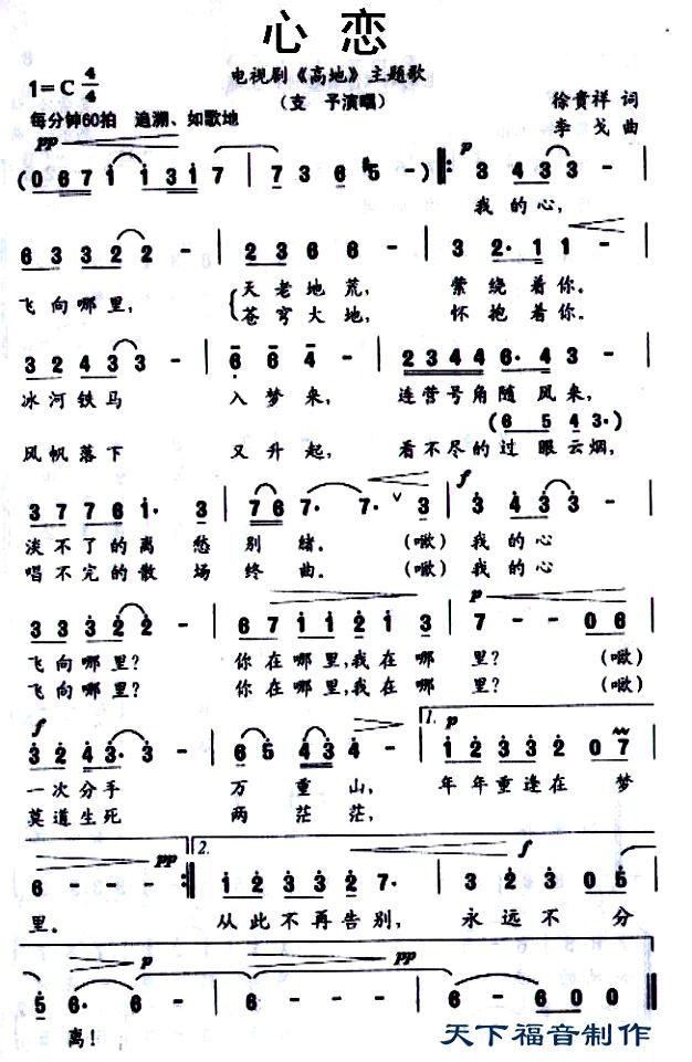 心恋简谱上传者为网友上传,原创作者为网络转载,歌曲原唱歌手为佚名,本简谱为图片格式,表现形式为,音乐性质为流行金曲。