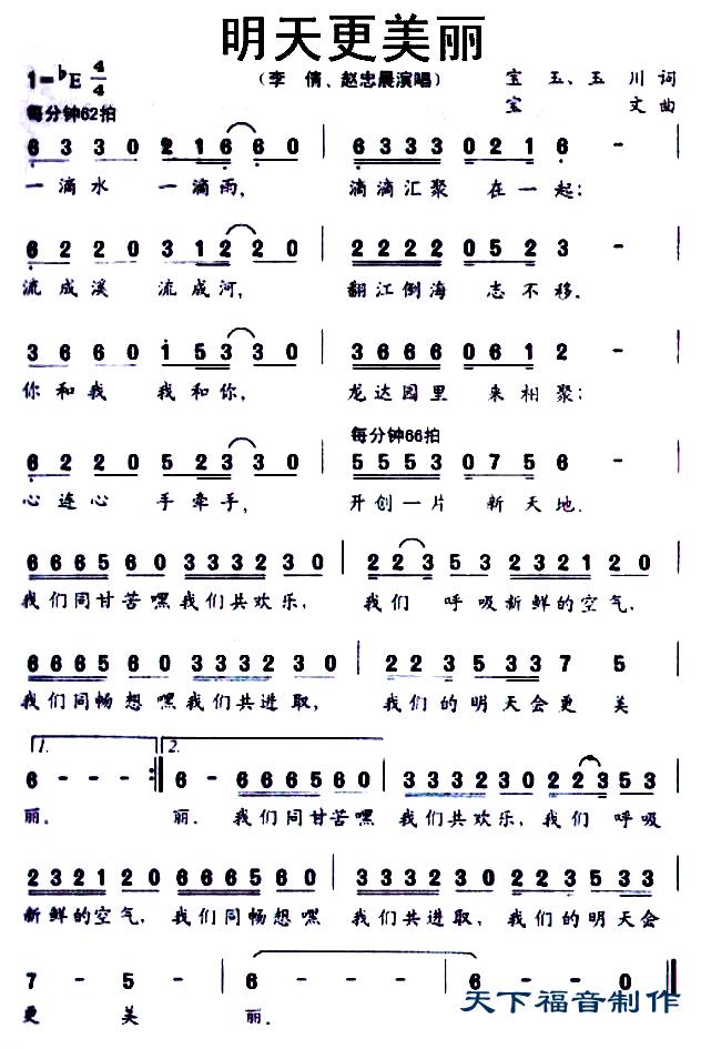 明天更美丽简谱上传者为网友上传,原创作者为网络转载,歌曲原唱歌手为佚名,本简谱为图片格式,表现形式为,音乐性质为流行金曲。
