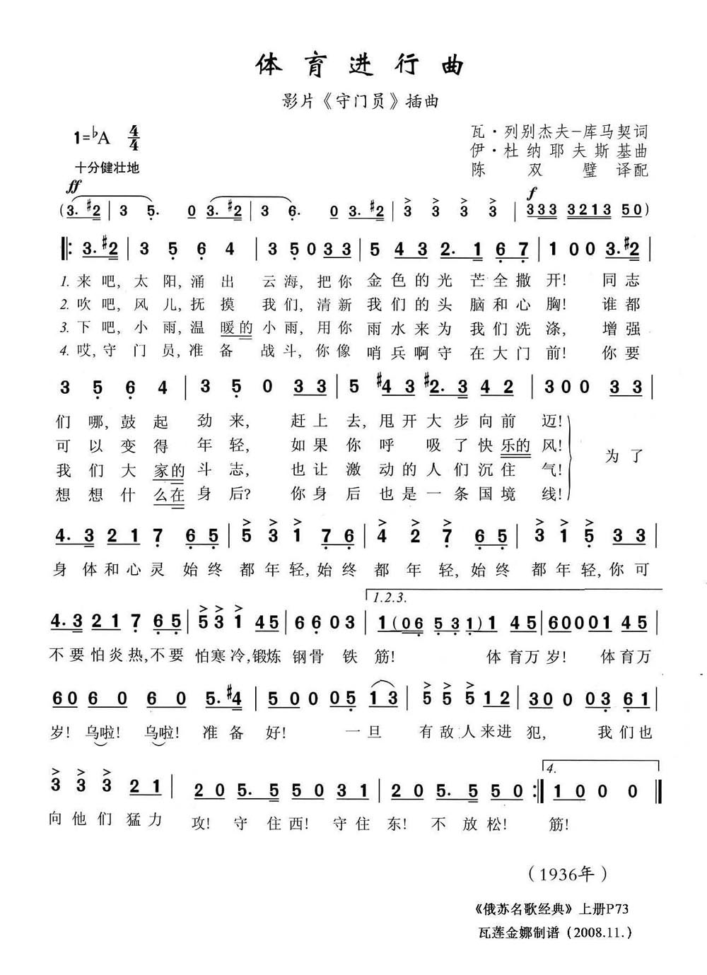 体育进行曲简谱上传者为网友上传,原创作者为网络转载,歌曲原唱歌手为佚名,本简谱为图片格式,表现形式为,音乐性质为流行金曲。