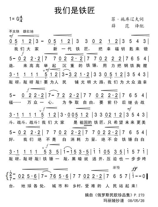 我们是铁匠简谱上传者为网友上传,原创作者为网络转载,歌曲原唱歌手为佚名,本简谱为图片格式,表现形式为,音乐性质为流行金曲。