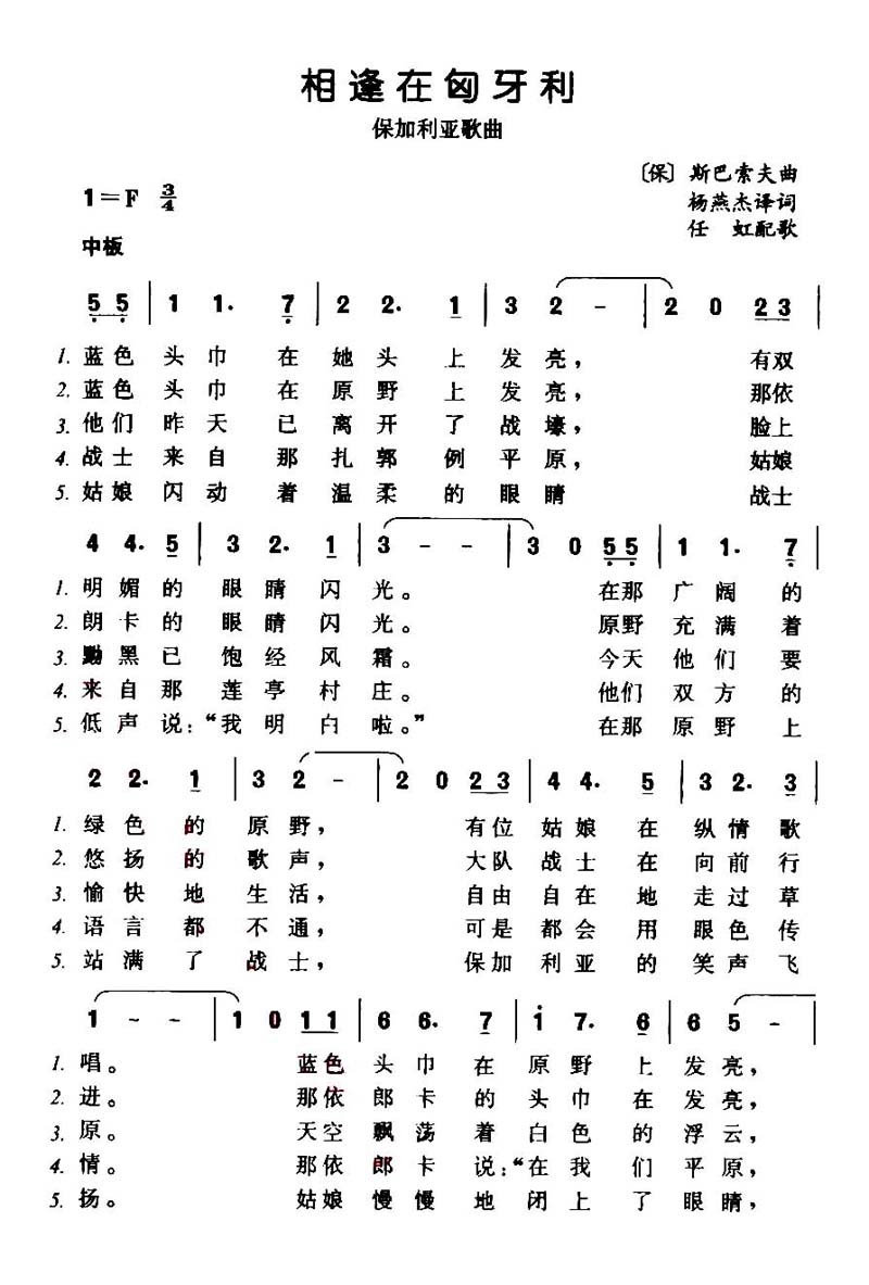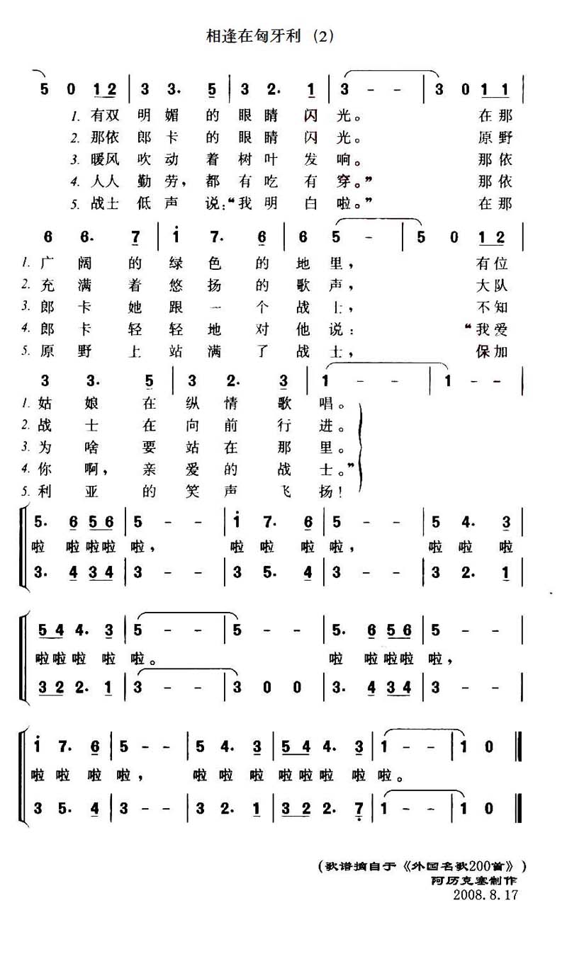 相逢在匈牙利简谱