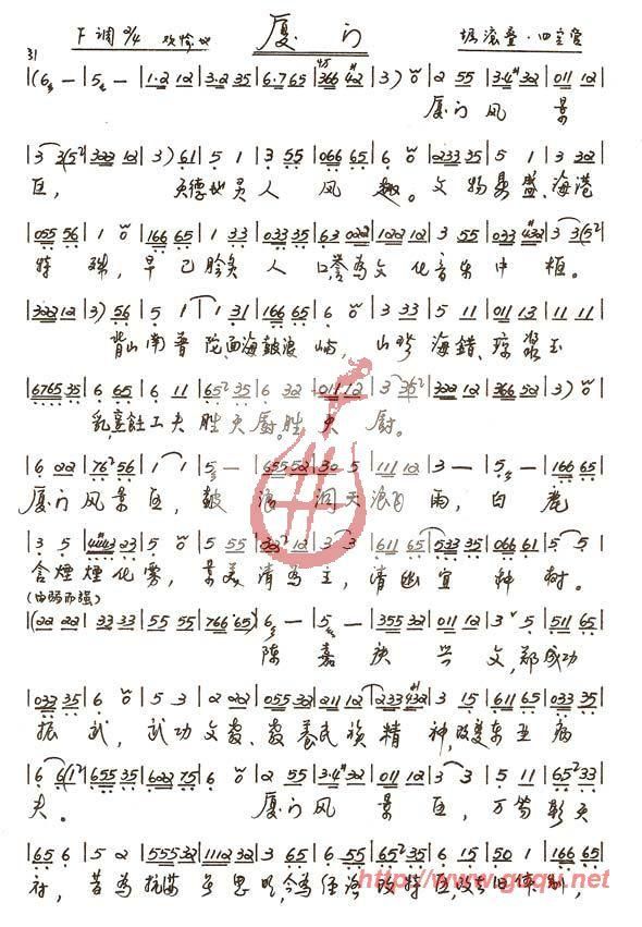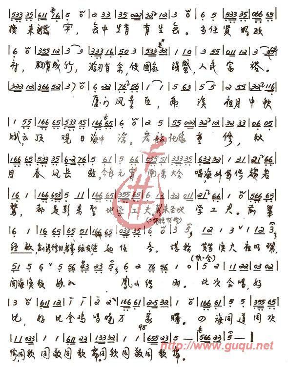 厦门 南音简谱上传者为网友上传,原创作者为网络转载,歌曲原唱歌手为佚名,本简谱为图片格式,表现形式为,音乐性质为流行金曲。