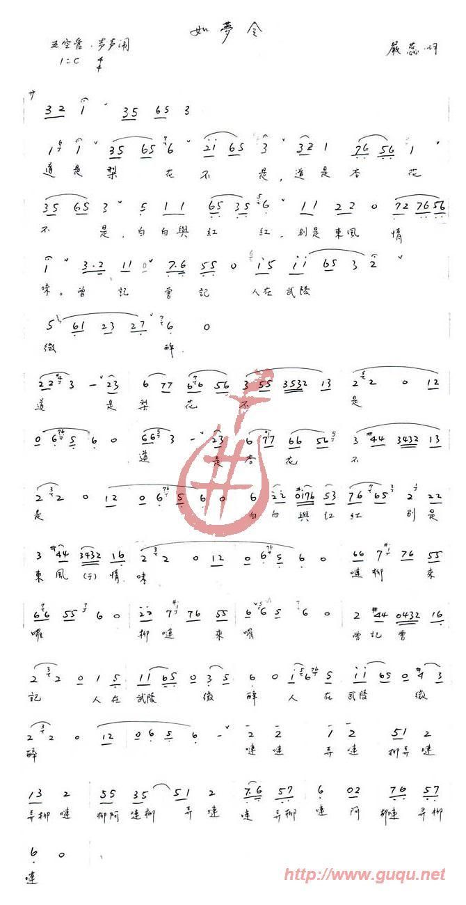 如梦令 南音简谱上传者为网友上传,原创作者为网络转载,歌曲原唱歌手为佚名,本简谱为图片格式,表现形式为,音乐性质为流行金曲。