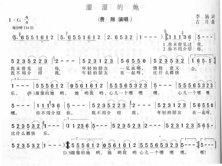 溜溜的她简谱上传者为网友上传,原创作者为网络转载,歌曲原唱歌手为佚名,本简谱为图片格式,表现形式为,音乐性质为流行金曲。