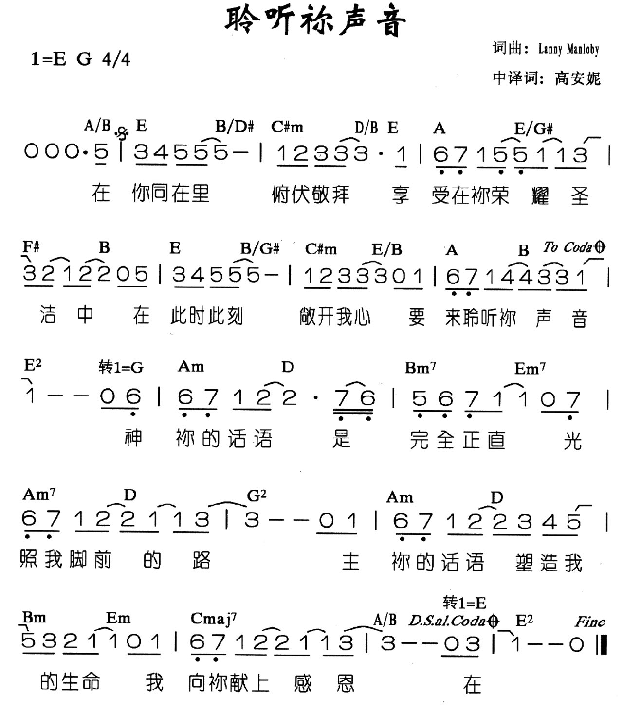 聆听你声音简谱上传者为网友上传,原创作者为网络转载,歌曲原唱歌手为佚名,本简谱为图片格式,表现形式为,音乐性质为流行金曲。