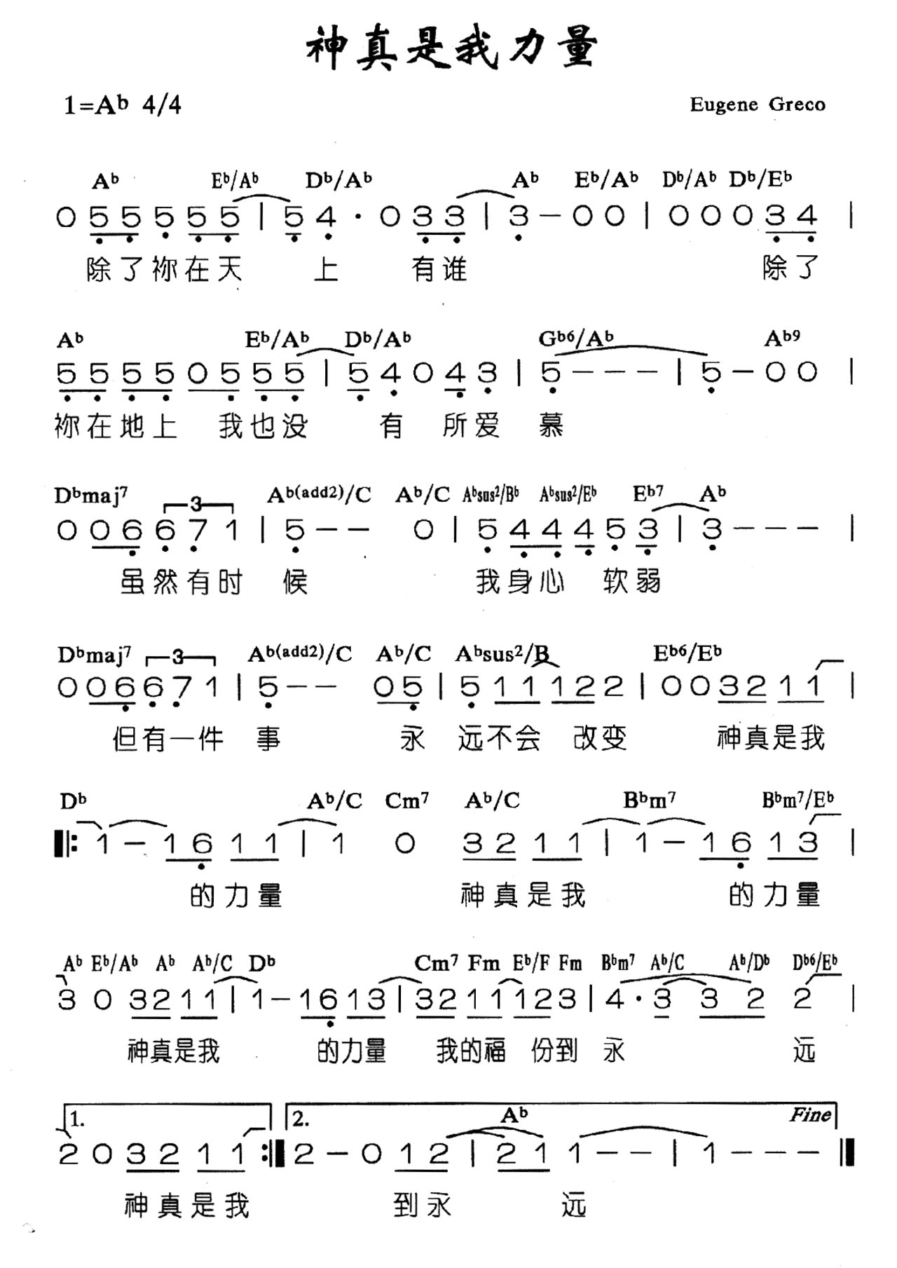 神真是我力量简谱上传者为网友上传,原创作者为网络转载,歌曲原唱歌手为佚名,本简谱为图片格式,表现形式为,音乐性质为流行金曲。